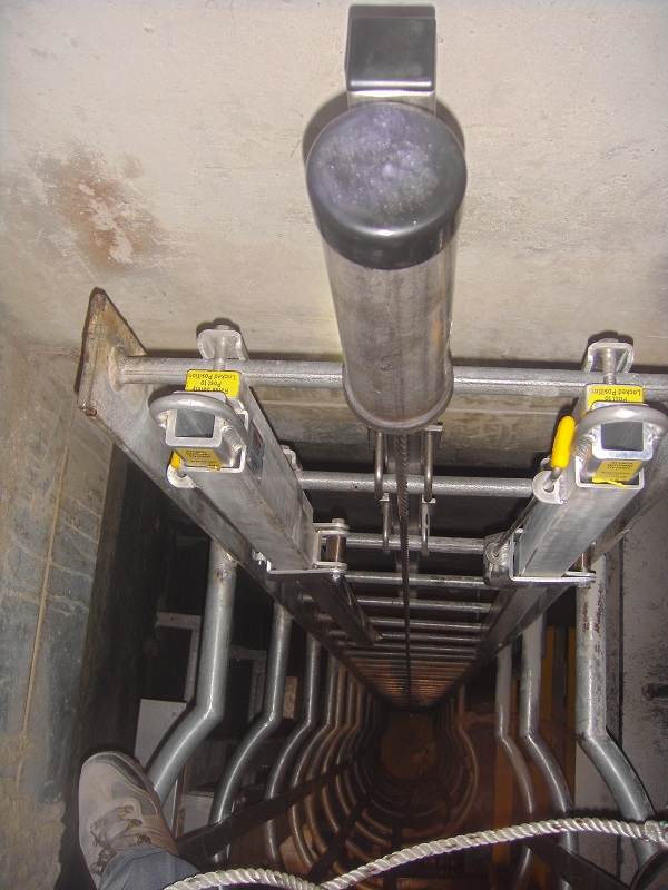 Installation of a high air fall level/vertical lifeline system